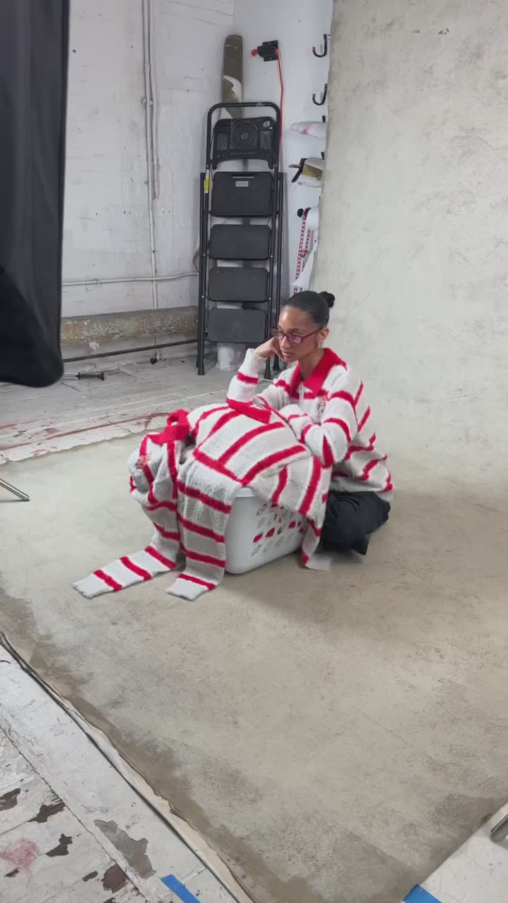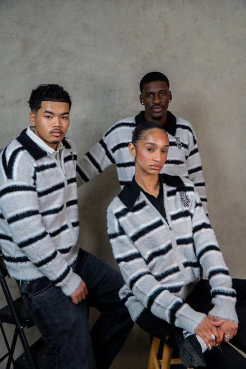 Pink & Grey Striped "WATW" Mohair Sweater